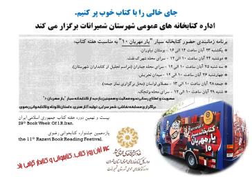 به گزارش روابط عمومی فرمانداری شهرستان شمیرانات، بینشیان ضمن تبریک به مناسبت روز کتاب، کتابخوانی و کتابدار و با عنایت به فرا رسیدن هفته کتاب افزود: کتابخانه سیار یار مهربان با 2000 جلد کتاب در هفته کتاب در 6 منطقه از شهرستان حضور خواهد یافت و به برگزاری مسابقات نقاشی، شعر سرایی، تولید آثار هنری، داستان کوتاه، قصه گویی، کتابخوانی و... خواهد پرداخت.
